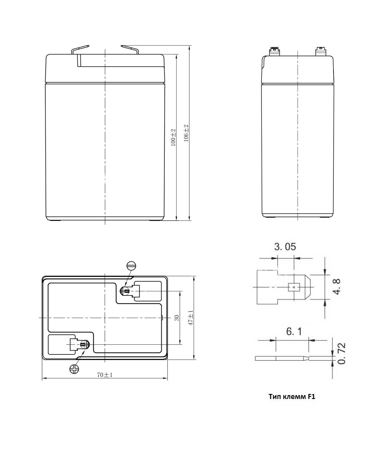 Аккумулятор свинцово-кислотный Ritar RT645 - 6В 4,5Ач.