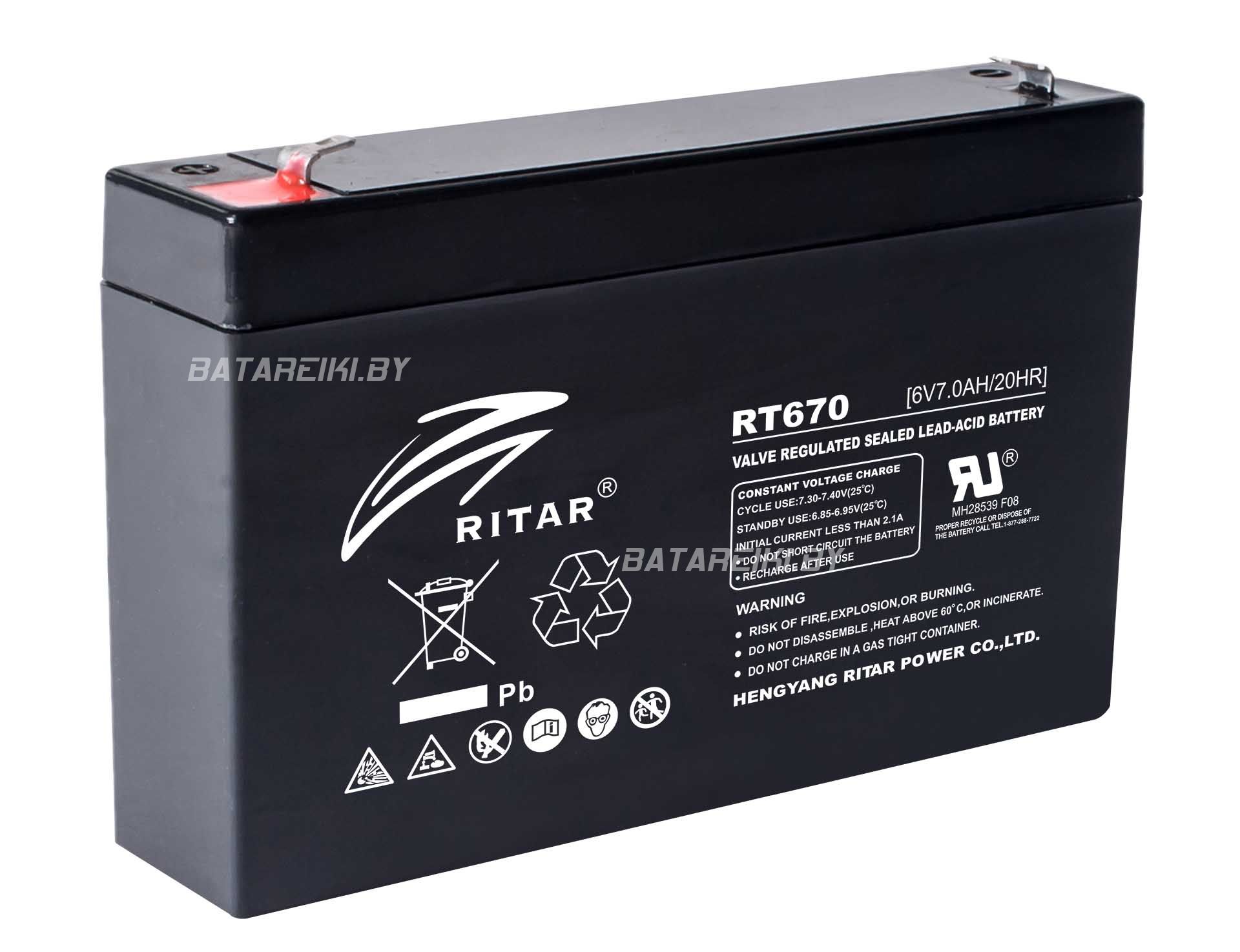Аккумулятор свинцово-кислотный Ritar RT670 - 6В 7,0Ач.