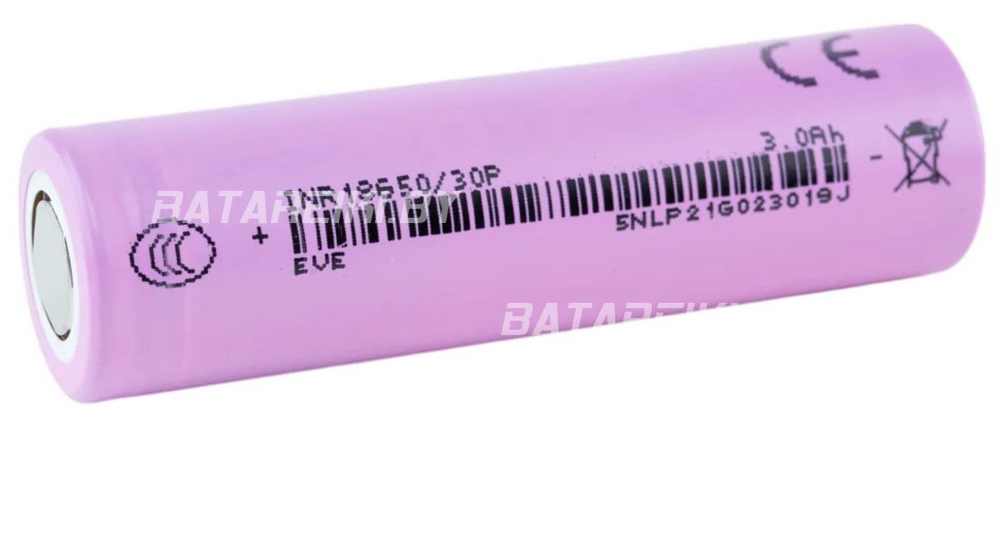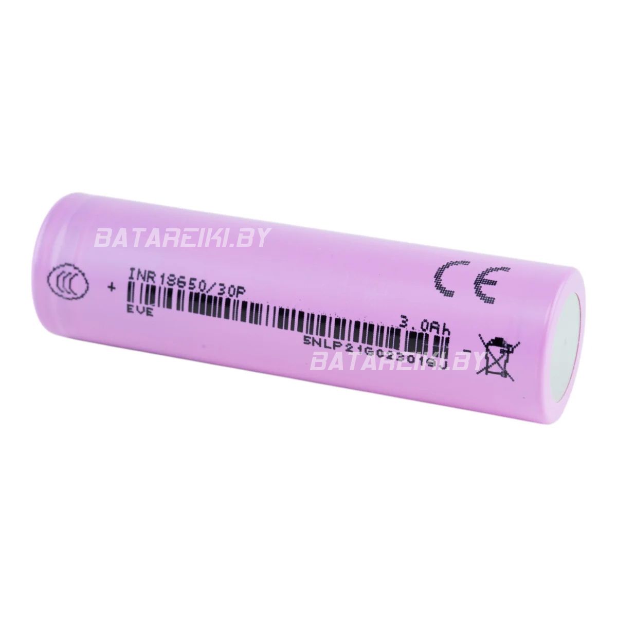 EVE 18650-30P 3000mAh - высокотоковый литий-ионный аккумулятор без встроенной защиты, используется для ремонта и восстановления аккумуляторных сборок в электроинструменте, электровелосипедах, электрошокерах, пылесосах. А также применяется как источник питания в парогенераторах, тактических фонарях, портативных зарядных устройствах (PowerBank) и др.