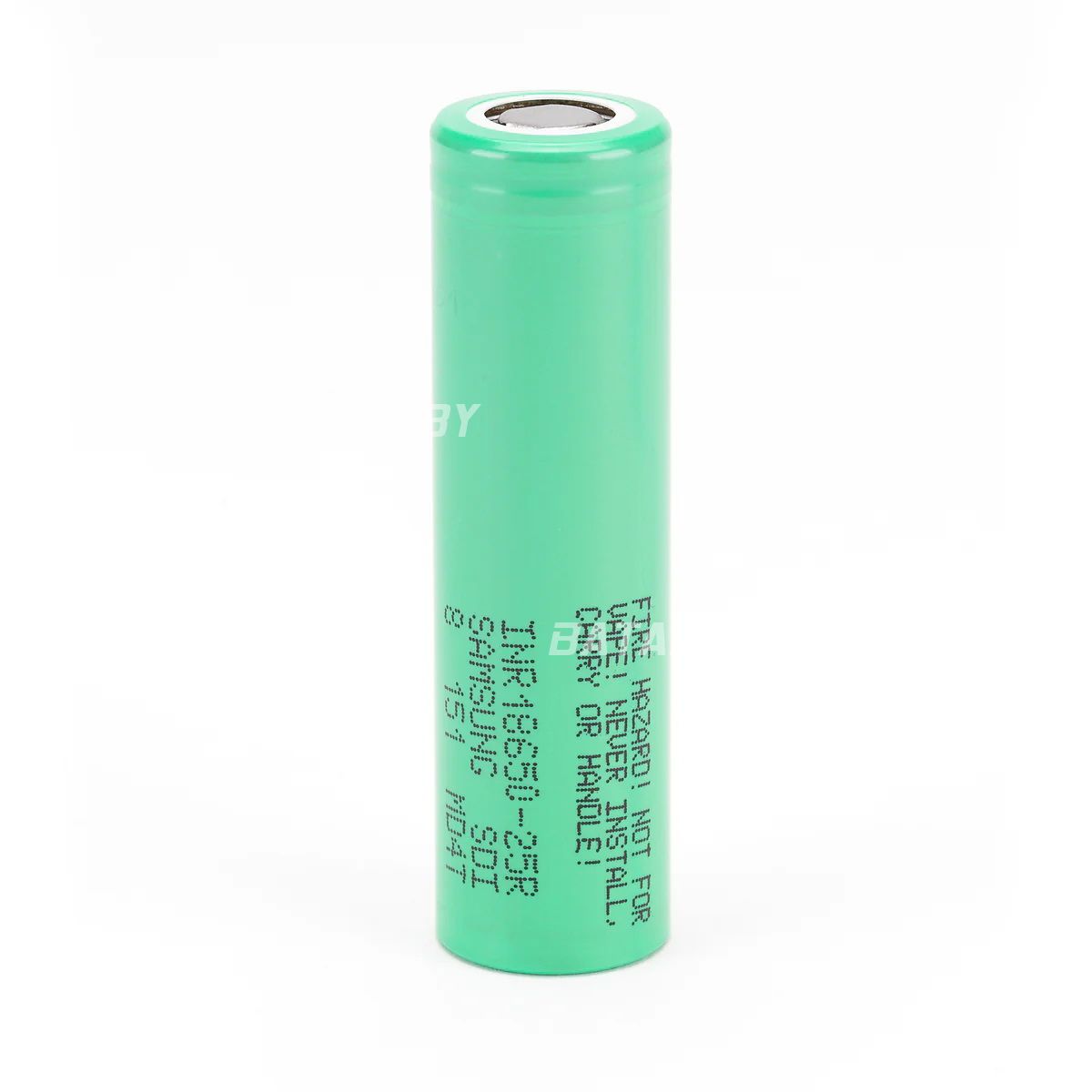 Samsung 18650-25R 2500mAh - высокотоковый литий-ионный аккумулятор без встроенной защиты, используется для ремонта и восстановления аккумуляторных сборок в электроинструменте, электровелосипедах, электрошокерах, пылесосах. А также применяется как источник питания в парогенераторах, тактических фонарях, портативных зарядных устройствах (PowerBank) и др.