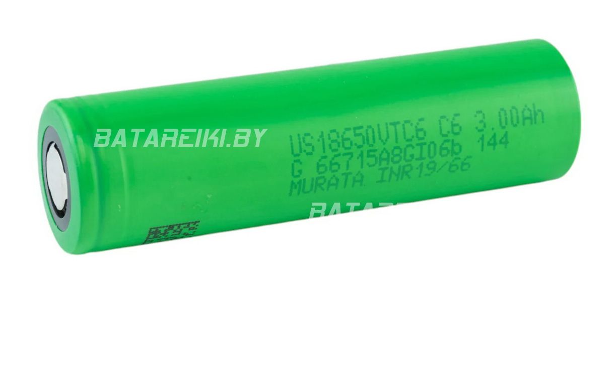 Sony/Murata US18650VTC6 - оригинальный высокотоковый li-ion аккумулятор 18650. Подходит для устройств, где требуется высокая мощность. Емкость - 3000mAh, максимальный ток 15 Ампер (30 Ампер кратковременно), внутреннее сопротивленее - 12...14,5 мОм.