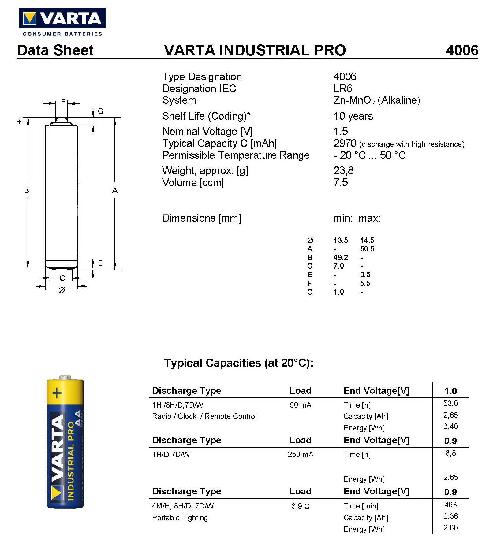 Varta AA Industrial Pro - разработана специально для применения в высокотехнологичных приборах, которым требуются источники энергии особой мощности.