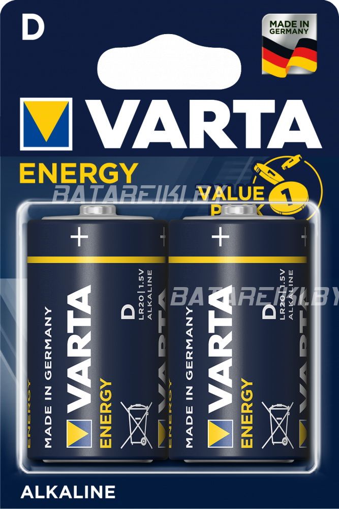 Varta Energy D LR20 прекрасно подходит для увеличивающейся потребности в источниках питания для устройств повседневного использования. Идеальное соотношение цена/качество. Надежный продукт широкого спектра применения.
