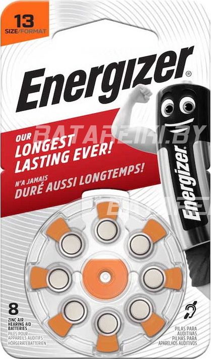 Energizer 13 - специально разработаны для надежной работы в чувствительных слуховых аппаратах. Обладают большой емкостью, не содержат токсичных веществ, имеют длительный срок хранения, поскольку конструкция элемента предусматривает специальную наклейку-ярлычок, исключающую доступ воздуха до момента эксплуатации.