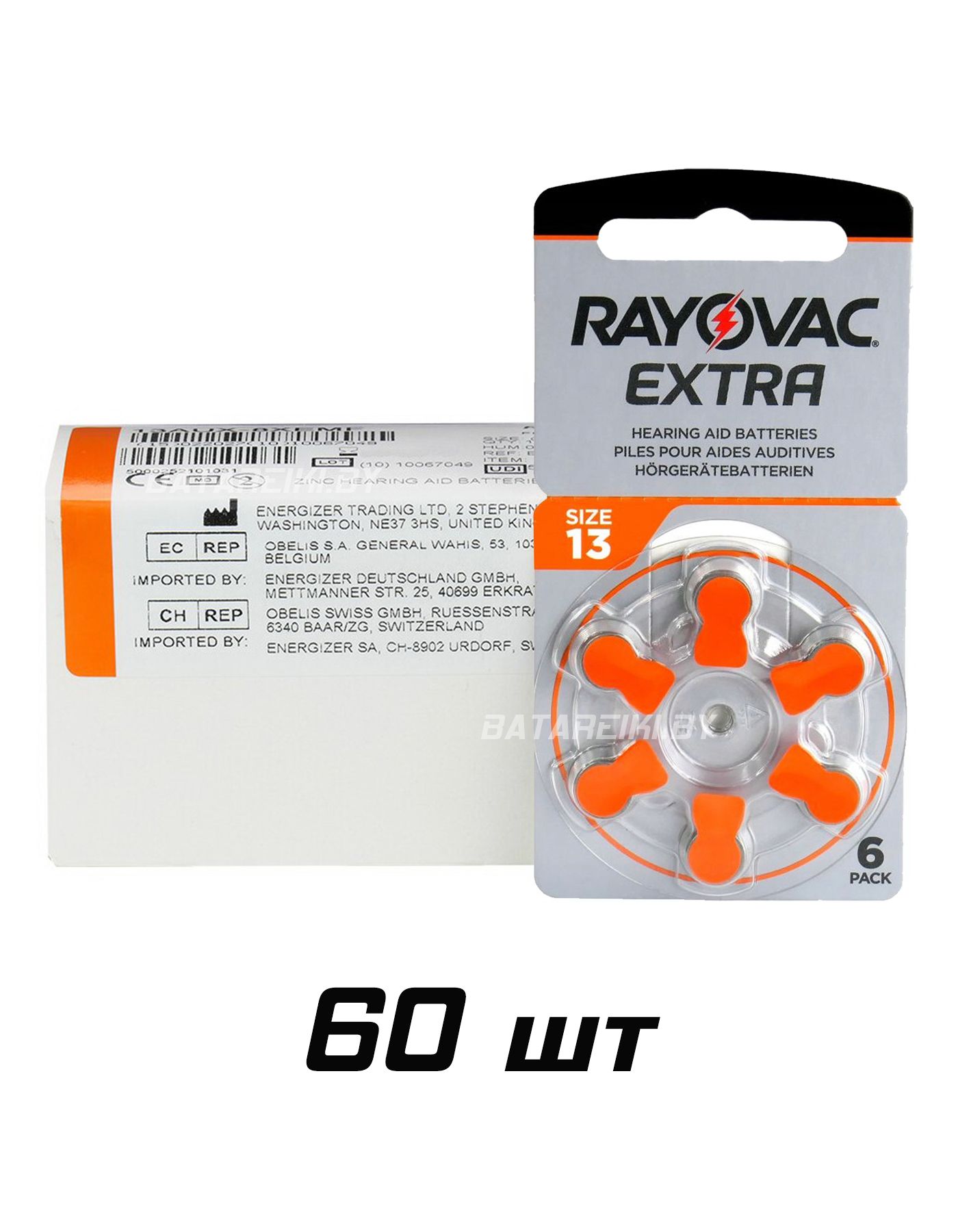 Rayovac Extra 13 - специально разработаны для надежной работы в чувствительных слуховых аппаратах. Обладают большой емкостью, не содержат токсичных веществ, имеют длительный срок хранения, поскольку конструкция элемента предусматривает специальную наклейку-ярлычок, исключающую доступ воздуха до момента эксплуатации.