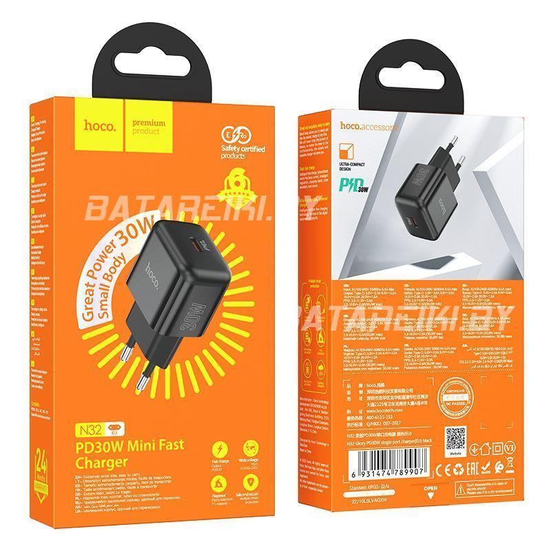 Сетевое зарядное Hoco N32 (черный)